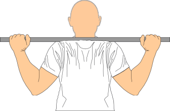 ハイバースクワットでは、首の後ろ・僧帽筋上部の高い位置にバーベルを乗せます。
