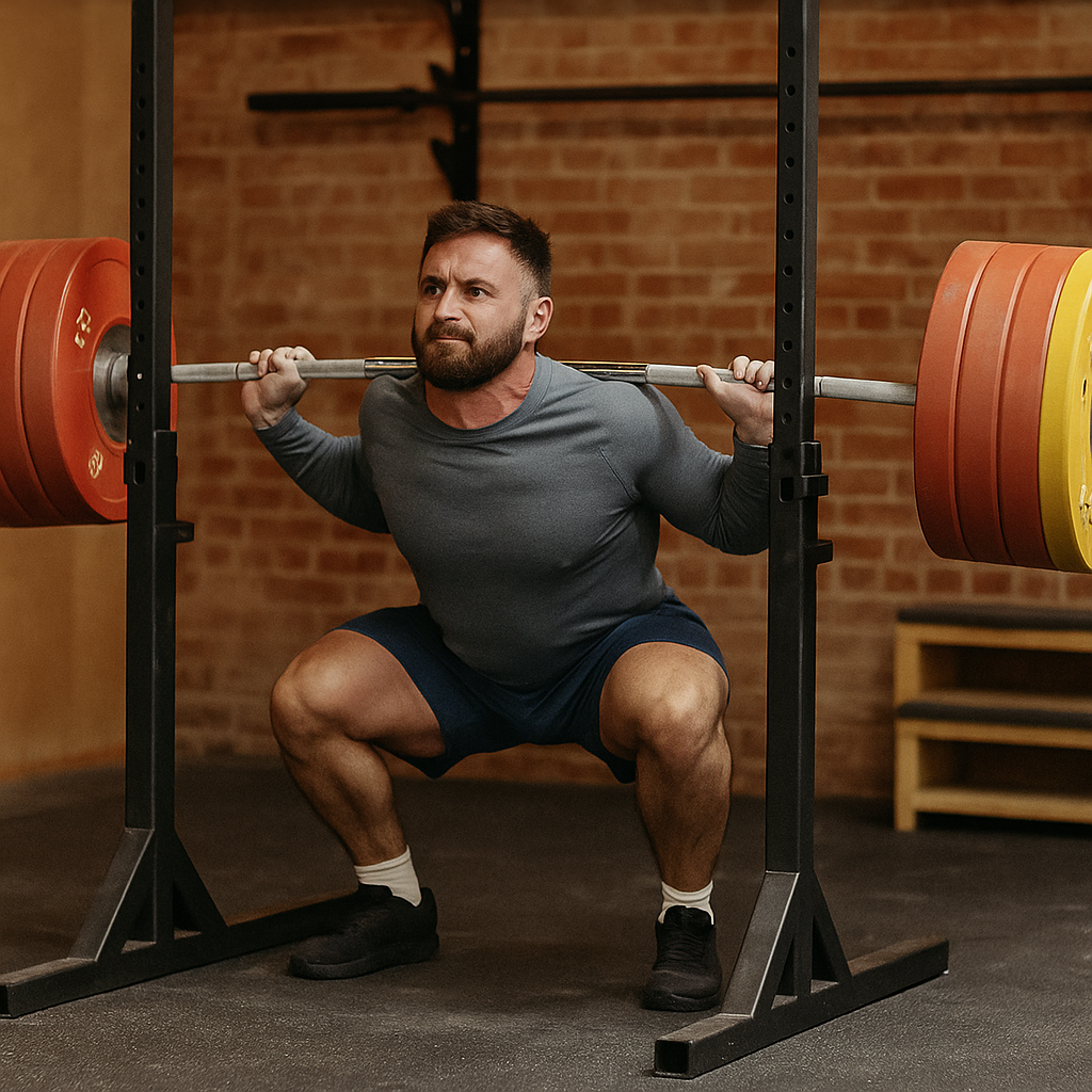 基本的なスクワット動作ができていない状態でバーベルを担ぐと、腰や膝に負荷がかかりやすく、ケガの原因になります。