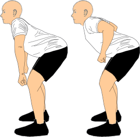 膝を軽く曲げ、背中は丸めずまっすぐをキープしたまま、股関節から上体を倒すように前傾姿勢を作りましょう。