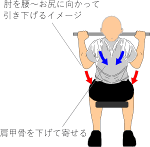 下半身を固定した状態で動作を行うため、懸垂に比べてフォームが崩れにくいという特徴があります。