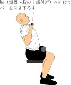 ② バーを胸の上部付近に向けて引き下ろす