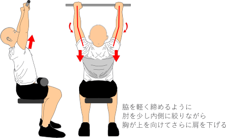 動作は自重トレーニングである「懸垂(チンニング)」とよく似ています。