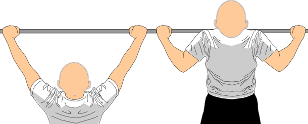 懸垂の「手幅」によるバリエーションには、標準的な手幅で行う『ミドルグリップ』、手幅を狭く設定する『ナローグリップ』、手幅を広く設定する『ワイドグリップ』があります。