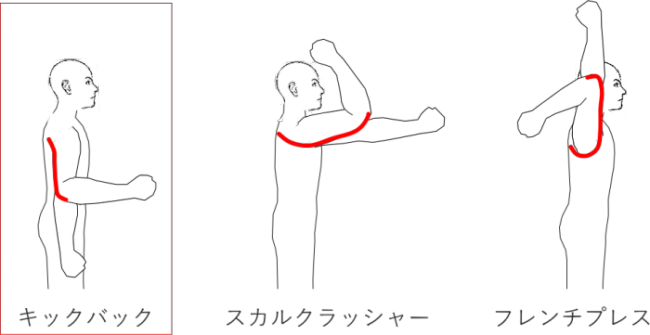 ※上腕三頭筋の中でも、特に「外側頭・内側頭」に刺激が加わりやすい種目となります。