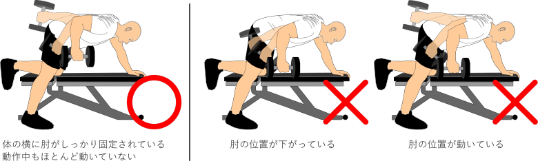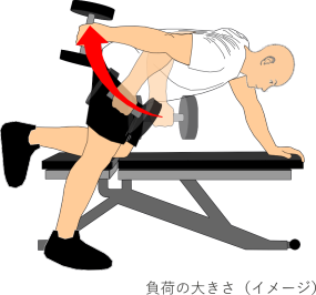 無理に負荷をかけようとすると肘を大きく後ろに引いた状態で動作を行わなければならないため、肩を痛めるリスクが高まります。