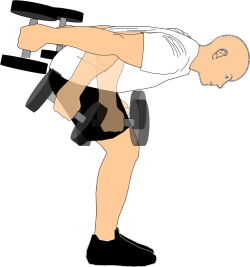 両手にダンベルを持ち、腰を支点に上体を前傾させ、両腕を同時に後方へ伸ばします。